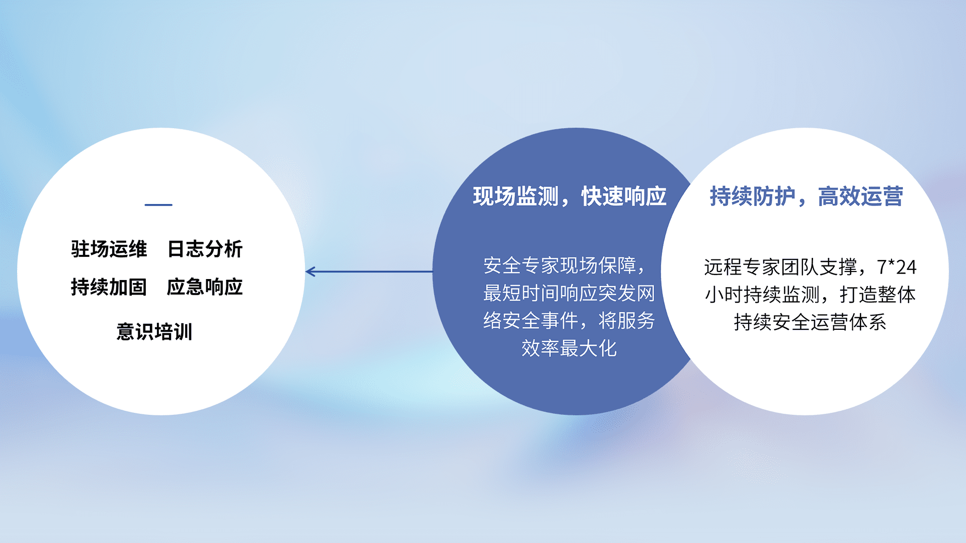7X24小时持续监测安全事件,保持安全策略有效性,降低资产脆弱性风险,,,,精准拦截黑客攻击,,,,减少被黑客利用的机会,,,第一时间遏制,,降低损失。。。。